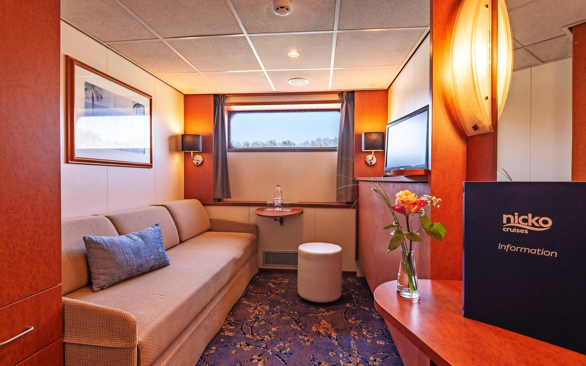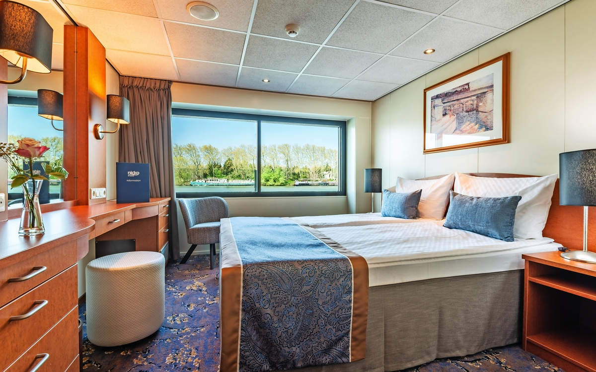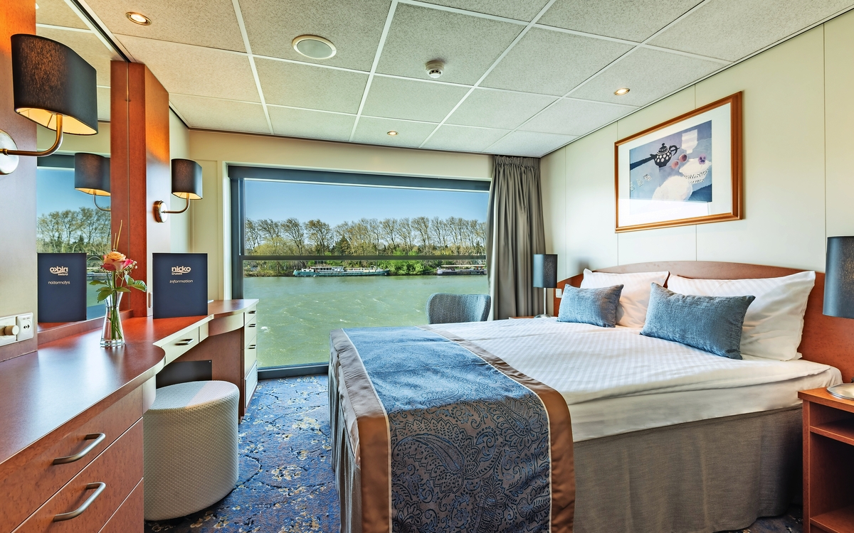 Alle Kabinen sind stilvoll und komfortabel eingerichtete Außenkabinen und verfügen über Dusche/WC, Haartrockner, Sat.-TV, Telefon, Safe und eine individuell regulierbare Klimaanlage. Die Kabinen auf dem Mittel- und Oberdeck sind ca. 14 m² groß. Die Deluxe Mitteldeck-Kabinen haben ein großes, zu öffnendes Panoramafenster, die Deluxe Oberdeck-Kabinen eine absenkbare Panoramafront. Alle anderen Kabinen auf dem Mitteldeck haben nicht zu öffnende, große Panoramafenster. Die nebeneinanderstehenden Betten können auf Wunsch auch getrennt gestellt werden. Die Hauptdeck-Kabinen sind ca. 11 m² groß, verfügen über nicht zu öffnende Aussichtsfenster und sind alle mit einem Klappbett und einem Sofabett ausgestattet.