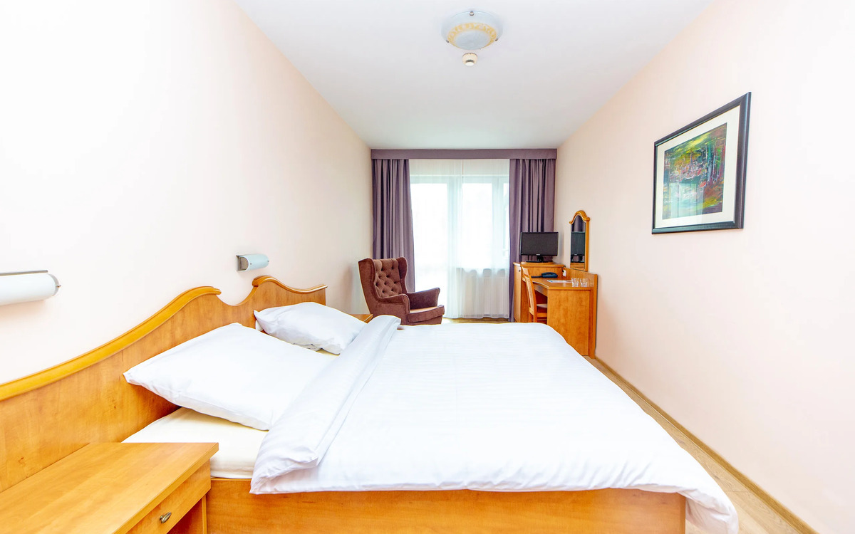 Im großzügigen Schwimmbad (11 x 15 m, ca. 25-28°C) und dem Whirlpool können Sie während der Öffnungszeiten für min. 4 Stunden erholsame Stunden verbringen und den Alltag hinter sich lassen. Die Sauna und den Fitnessraum im Resort können Sie gegen Gebühr nutzen. Die Nutzung der Salzgrotte ist bereits einmal im Preis inkludiert. Alle gängigen Kur-Anwendungen, wie Fangopackungen, Sauerstoff therapie und Lasertherapie werden vom qualifizierten Therapeutenteam direkt im Resort angeboten. Gegen Aufpreis können Sie sich zudem im Friseur- und Kosmetiksalon sowie bei Massagen verwöhnen lassen. Die regelmäßig stattfindenden Hotel-Veranstaltungen, wie Tanzabende oder kulturelle Veranstaltungen lassen keine Langeweile aufkommen.