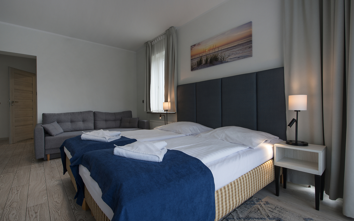 Im Hotel Baltic Spa wohnen Sie in großzügigen Apartment-Zimmern. Alle 45 Zimmer sind mit Dusche/WC, DVB-TV, kostenfreiem Internetzugang (WLAN), Kühlschrank und Wasserkocher ausgestattet. Die Komfort Zimmer (gg. Aufpreis) verfügen über ein kleines Schlafzimmer (ca. 8 m²) mit zwei getrennt stehenden Betten und über ein Wohnzimmer mit Schlafcouch.