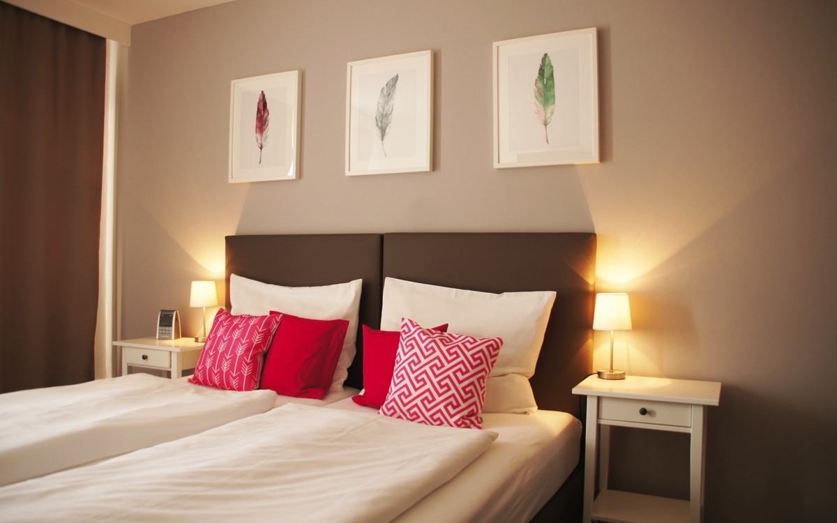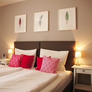 Die Doppelzimmer im Hotel Dein Franz sind modern mit Boxspringbetten und Balkon oder französischem Balkon ausgestattet.