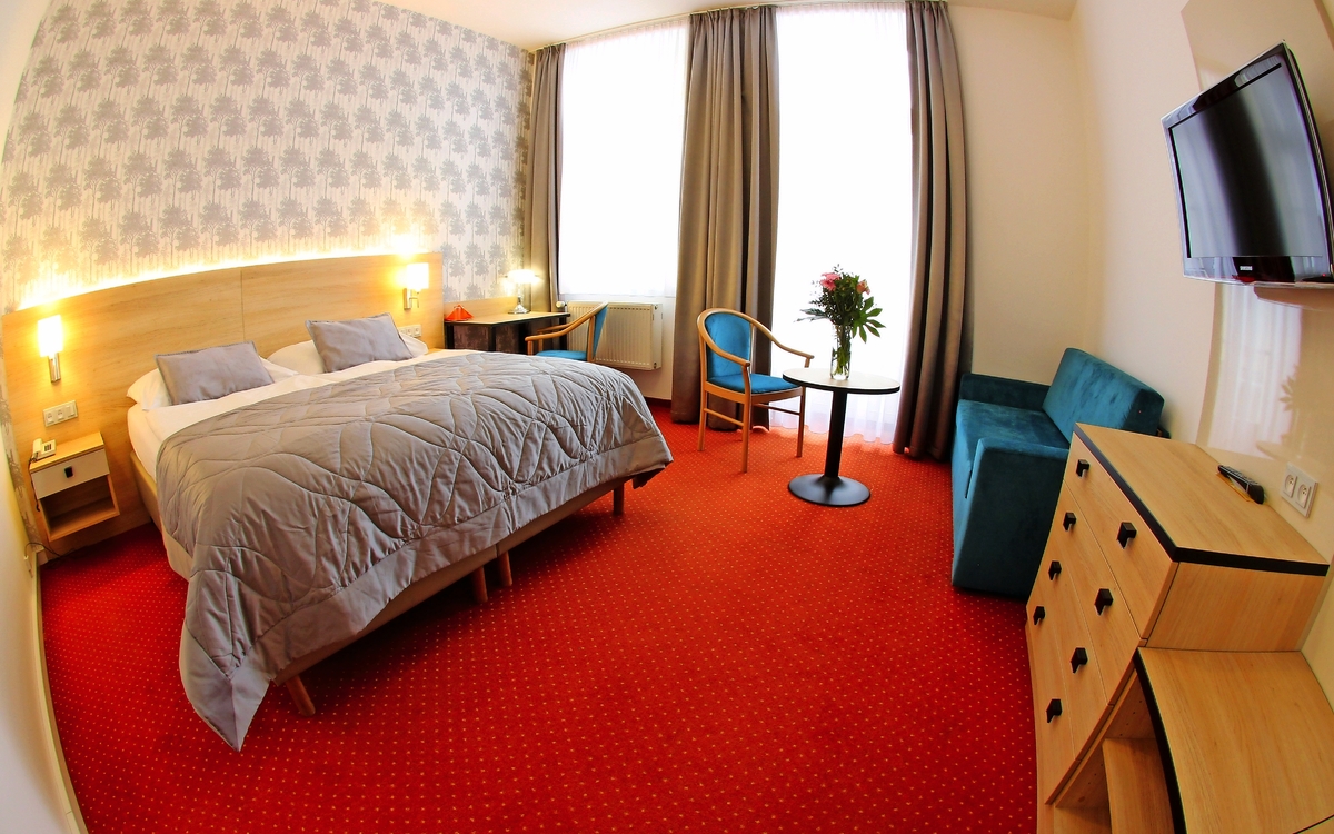 Die Einzelzimmer im Hotel Flora sind bei gleicher Ausstattung wie die Doppelzimmer etwas kleiner, aber bieten Ihnen alles was Sie für Ihren Kuraufenthalt in Marienbad benötigen.