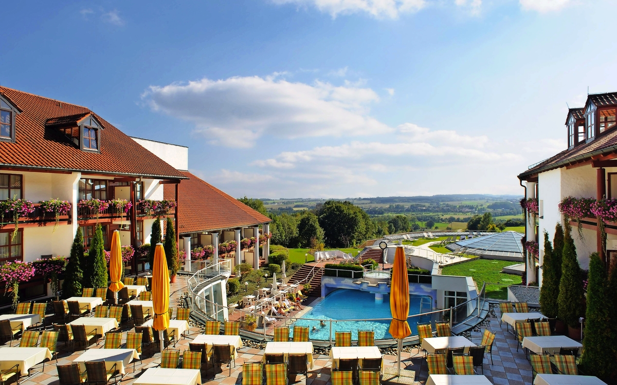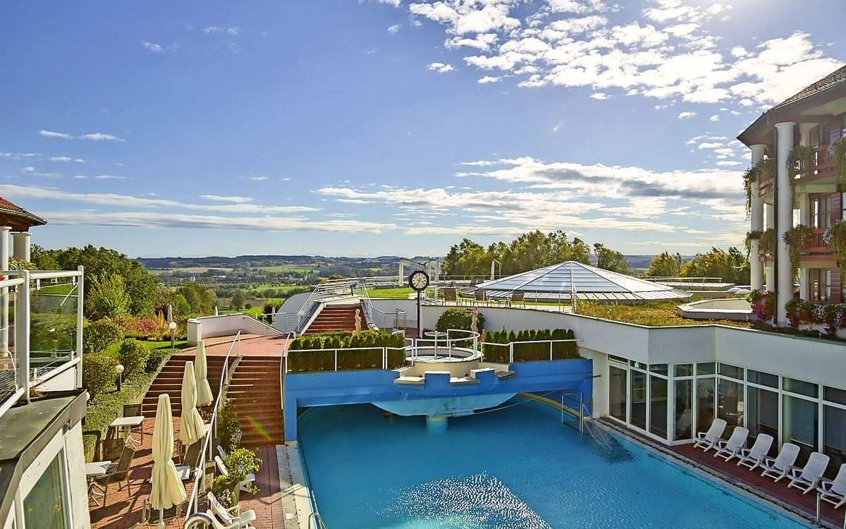 Der charmante Kurort Bad Griesbach liegt inmitten einer idyllisch hügeligen Landschaft, die auch als "bayerische Toskana" bekannt ist. Bad Griesbach ist der ideale Ort für einen einzigartigen Erholungsurlaub. Insgesamt drei Thermalquellen sprudeln aus 1522 Metern Tiefe von der Natur auf 30°C, 38°C und 60°C erwärmt. Schöpfen Sie neue Kraft und spüren Sie die entspannende Wirkung des Thermalwassers. Für Sportbegeisterte bietet das Kurörtchen ein modernes Outdoor-Fitnessstudio im Kurpark, das größte zusammenhängende Golf-Ressort Europas und 150 Kilometer lange Nordic Walking-Wegstrecken. Auch das vielfältige Abend- und Kulturprogramm wird Sie begeistern!