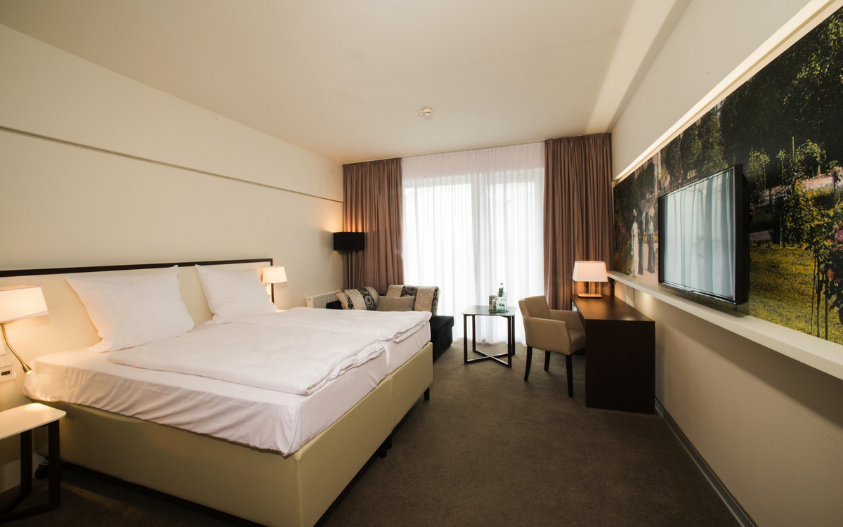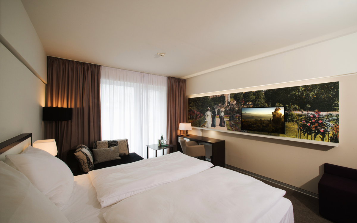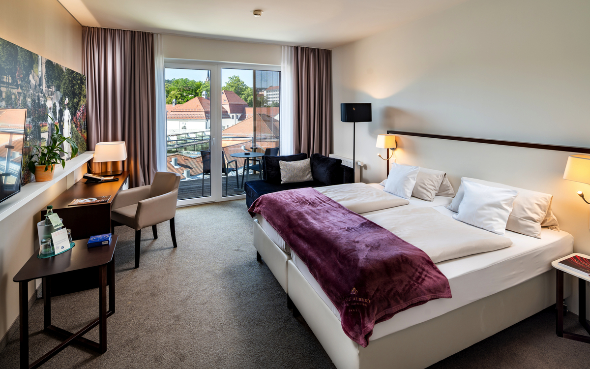 Alleinreisende erhalten im Hotel König Albert ein großzügiges Doppelzimmer Superior zur Alleinbenutzung.
