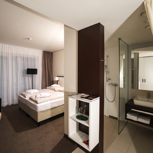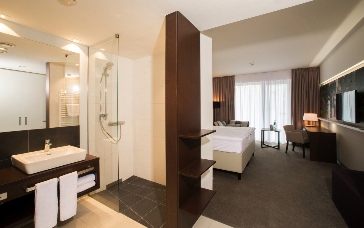 - Hoteleigener Bademantelgang zur Soletherme mit Saunawelt und zum Albert Bad