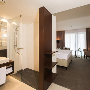 Ein Bademantelgang führt Sie vom Hotel direkt zur Soletherme und Saunawelt Bad Elster (gg. Aufpreis) sowie zur weitläufigen Bade- und Saunalandschaft im historischen Albert Bad. Hier erwarten Sie unter anderem unterschiedliche Innen- und Außenbecken mit einer Wassertemperatur von 25°C bis 35°C mit Massagedüsen, Sprudelbänken und vielem mehr.