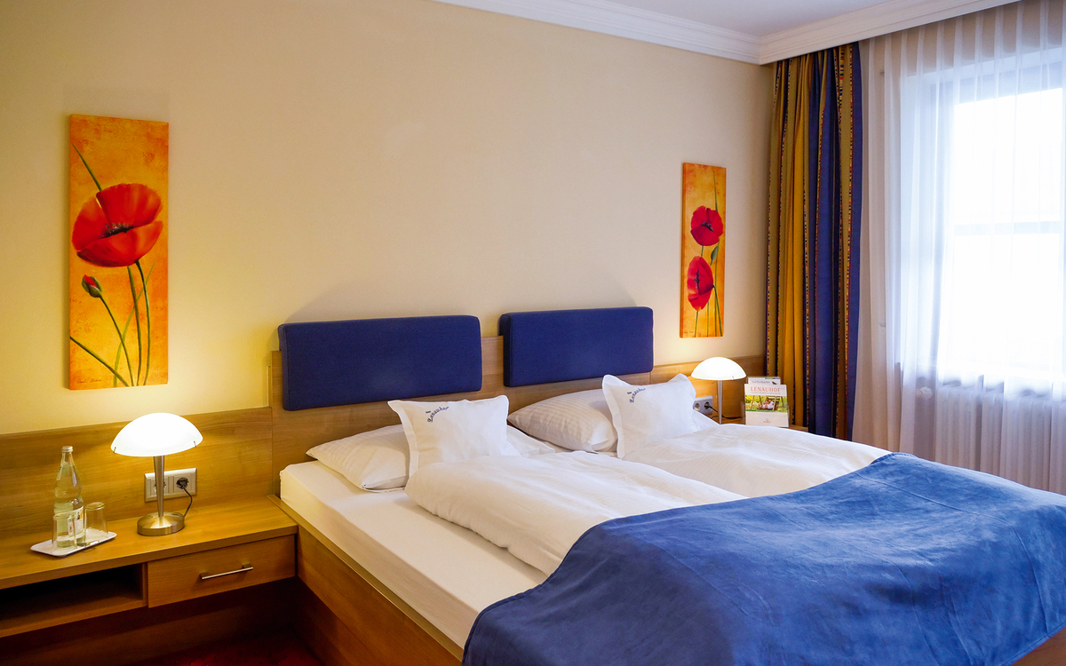 Die 28 Zimmer (22-26 m²) des Hotels sind alle komfortabel mit Dusche/WC, Föhn, Flachbild-Sat.-TV, Telefon, kostenfreiem Internetzugang (WLAN), Kühlschrank, Safe und Balkon ausgestattet. Einzelzimmer sind Doppelzimmer zur Alleinbenutzung. Zudem sind alle Zimmer bequem mit dem Hotellift erreichbar.