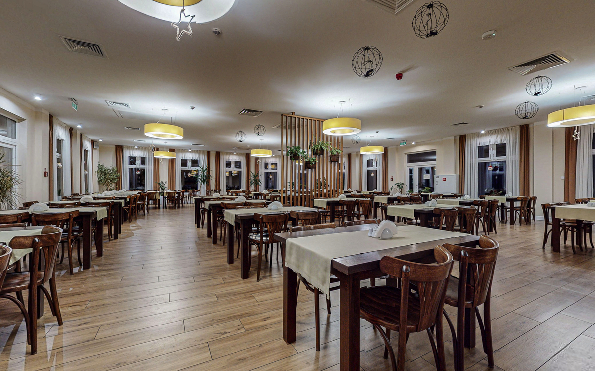 Im Restaurant mit Blick auf den östlichen Ecopark erwartet Sie morgens ein reichhaltiges Frühstücksbüfett mit warmen und kalten Speisen. Abends werden abwechslungsreiche polnische und internationale Gerichte serviert, darunter vegetarische Optionen. Highlights sind die Live-Cooking-Station sowie die hausgemachte Pizza aus dem Ofen. Ergänzt wird das Angebot durch ein gemütliches Café und eine Bar.