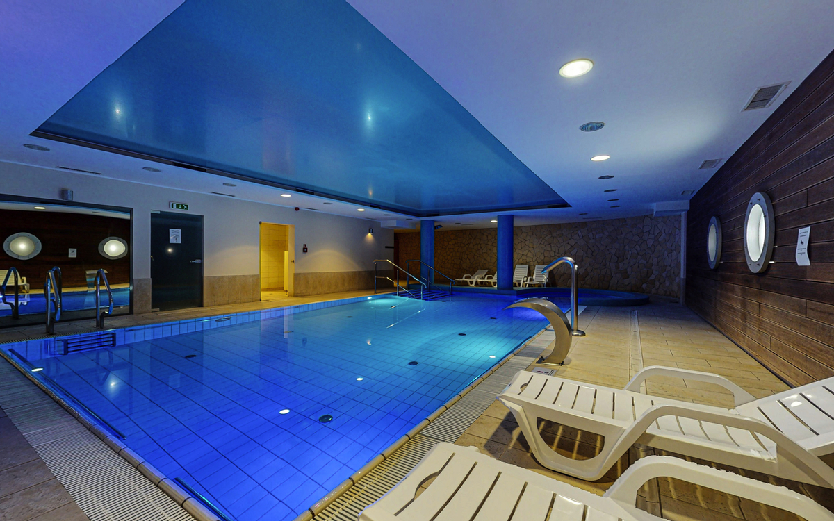 Das Herzstück des Hauses ist der großzügige Wellnessbereich mit Hallenbad (13 x 6 m) inklusive Massagedüsen und kleinem Wasserfall, Sauna und Ruhezonen. Im Spa stehen gegen Aufpreis zusätzlich klassische Massagen, Aroma- und Hydrotherapien, Beautybehandlungen sowie ein breites physiotherapeutisches Angebot zur Verfügung, darunter Moorpackungen, Inhalationen, Kryo-, Elektro-, Magnetfeld-, Laser- und Stoßwellentherapie, Ultraschall, Solux-Lampe und Lymphdrainage. Für aktive Gäste gibt es zudem einen Fitnessraum, einen Fahrradverleih sowie vielfältige Möglichkeiten für Erholung und Aktivitäten in der umliegenden Natur.