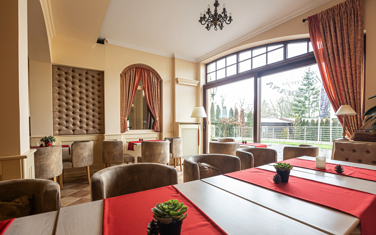 Im Rahmen der Halbpension erhalten Sie das Frühstück und Abendessen als reichhaltiges Buffetangebot mit polnischen und internationalen Spezialitäten. Zum Abendessen sind die Getränke Tee, Säfte und Wasser für Sie bereits im Reisepreis inkludiert. Am Nachmittag können Sie einmal pro Aufenthalt Kaffe/Tee und hausgemachten Kuchen im Café des Hotels genießen.