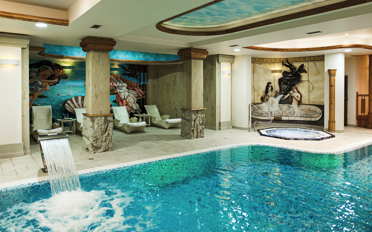 Im Wellness- & Spa-Zentrum des Hotels erwartet Sie ein Hallenbad (9 x 5 m, ca. 29°C), Whirlpool, Dampfbad, Sauna und eine Eishöhle. Zusätzlich steht Ihnen im Erholungsraum die sonnige Wiese „Trofana Mountain“ zur Verfügung, wo Sie bei mediterraner Wärme einen natürlichen Bräunungseffekt erhalten und gleichzeitig vom Alltag abschalten können. Darüber hinaus werden Ihnen in angenehmer Atmosphäre wohltuende Kur- und Beauty-Anwendungen im Hotel angeboten.