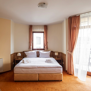 Die 99 Zimmer des Hotels verteilen sich auf zwei Gebäude. Im 3-Sterne-Haus befinden sich 39 Zimmer und im neuen 4-Sterne-Teil befinden sich 60 hochwertige Zimmer. Zur weiteren Hotel-Ausstattung gehören eine 24-Stunden-Rezeption, Lift, Café-Restaurant mit Außenterrasse und Bar, Veranstaltungsräume und ein einzigartiges Wellness- & Spa-Zentrum.