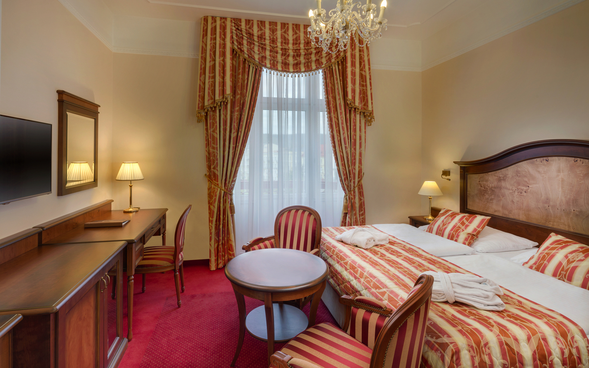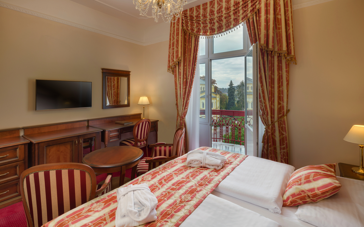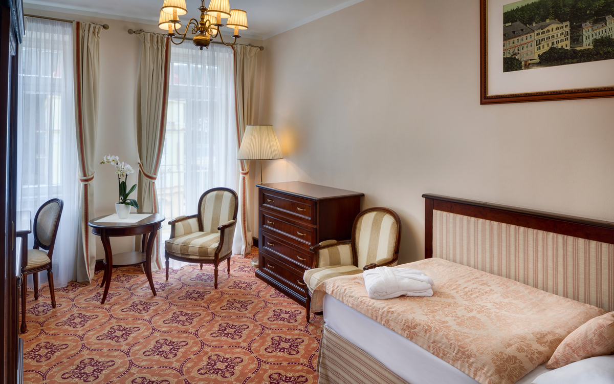 Die großzügigen Einzelzimmer im Hvĕzda Ensana Health Spa Hotel (Haus Imperial) haben zusätzlich einen wunderschönen Blick zum Goetheplatz.