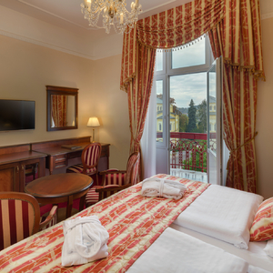 Diese Doppelzimmer im Hvĕzda Ensana Health Spa Hotel (Haus Imperial) verfügen zusätzlich über eine schöne Aussicht zum Goetheplatz.