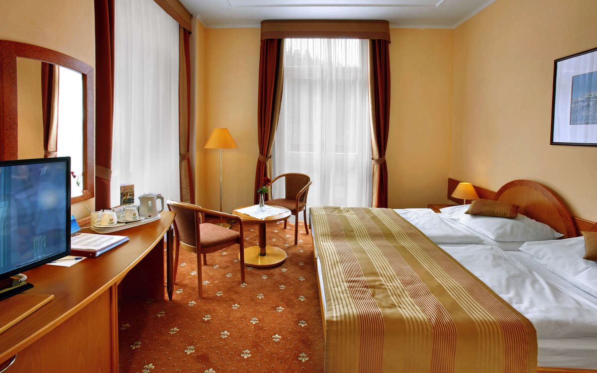 Die Doppelzimmer Superior im Hvĕzda Ensana Health Spa Hotel (Haus Neapol) sind besonders großzügig geschnitten und bieten daher viel Platz für einen erholsamen Kururlaub.