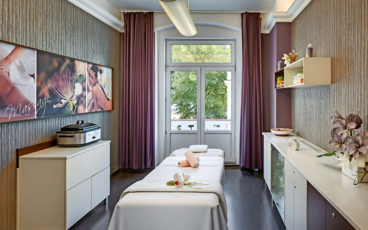 Der Kur-Bereich des Resorts liegt im Haus Hvĕzda und bietet Ihnen wohltuende Anwendungen unter Nutzung lokaler Heilmittel und der hoteleigenen Balbín-Mineralquelle. Hier befinden sich auch die Praxisräume der Ärzte und die Therapieabteilung des Resorts. Erholsame Stunden verbringen Sie zudem im Aqua-Wellnesszentrum des Hvĕzda Resorts mit dem größten Schwimmbad Marienbads (18 x 8 m, ca. 31°C), Whirlpool, finnischer Sauna, Dampfbad sowie Tepidarium. Die Salzgrotte können Sie gegen Gebühr nutzen. Aktive Entspannung verspricht der Besuch des Premier Fitness Centre im Hotel Centrální Láznĕ oder des Römischen Bads mit drei Schwimmbecken im Hotel Nové Láznĕ (1x Eintritt pro Woche inkl.).