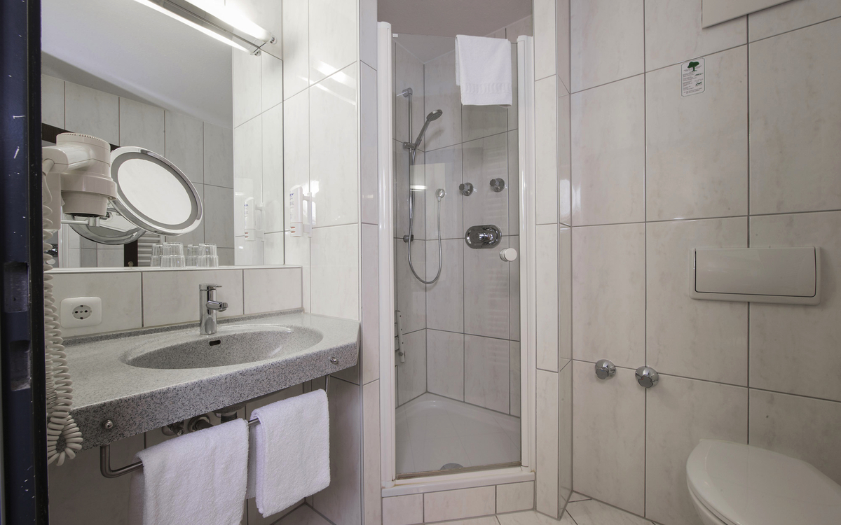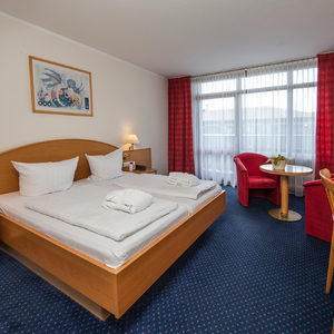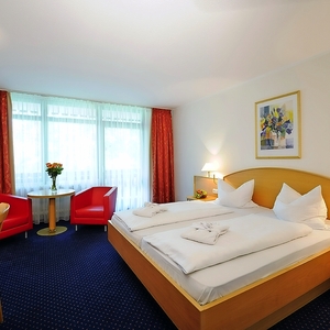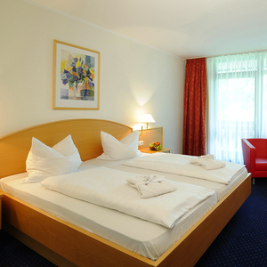 Die Einzelzimmer Standard im Johannesbad Hotel Königshof sind großzügig geschnitten und verfügen zudem über einen Balkon mit Blick zur ruhigen Seitenstraße. Einzelreisende erhalten ein Doppelzimmer zur Alleinbenutzung.