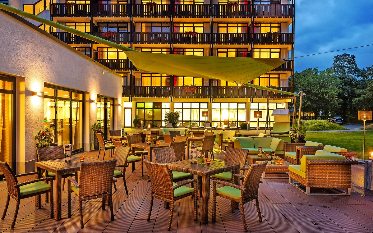 Darüber hinaus ist der Königshof bekannt und beliebt für seinen prall gefüllten Veranstaltungskalender. Ob Tanzabend, Modenschau oder Kunsthandwerk, hier ist für jeden Geschmack das Passende dabei. Zudem lädt die schöne Liegewiese des Hotels mit einem gemütlichen Terrassencafé zum Verweilen ein. Für den sportlichen Ausgleich sorgt eine Tour mit den Leihfahrrädern des Hotels (gg. Gebühr).