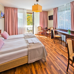 Die Einzelzimmer im Kurhaus Olymp 2 sind gemütlich eingerichtete Doppelzimmer zur Alleinbenutzung, die zum Teil über einen Balkon verfügen.