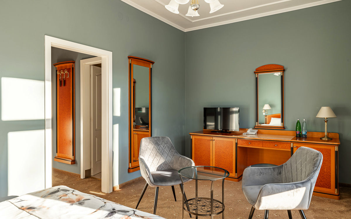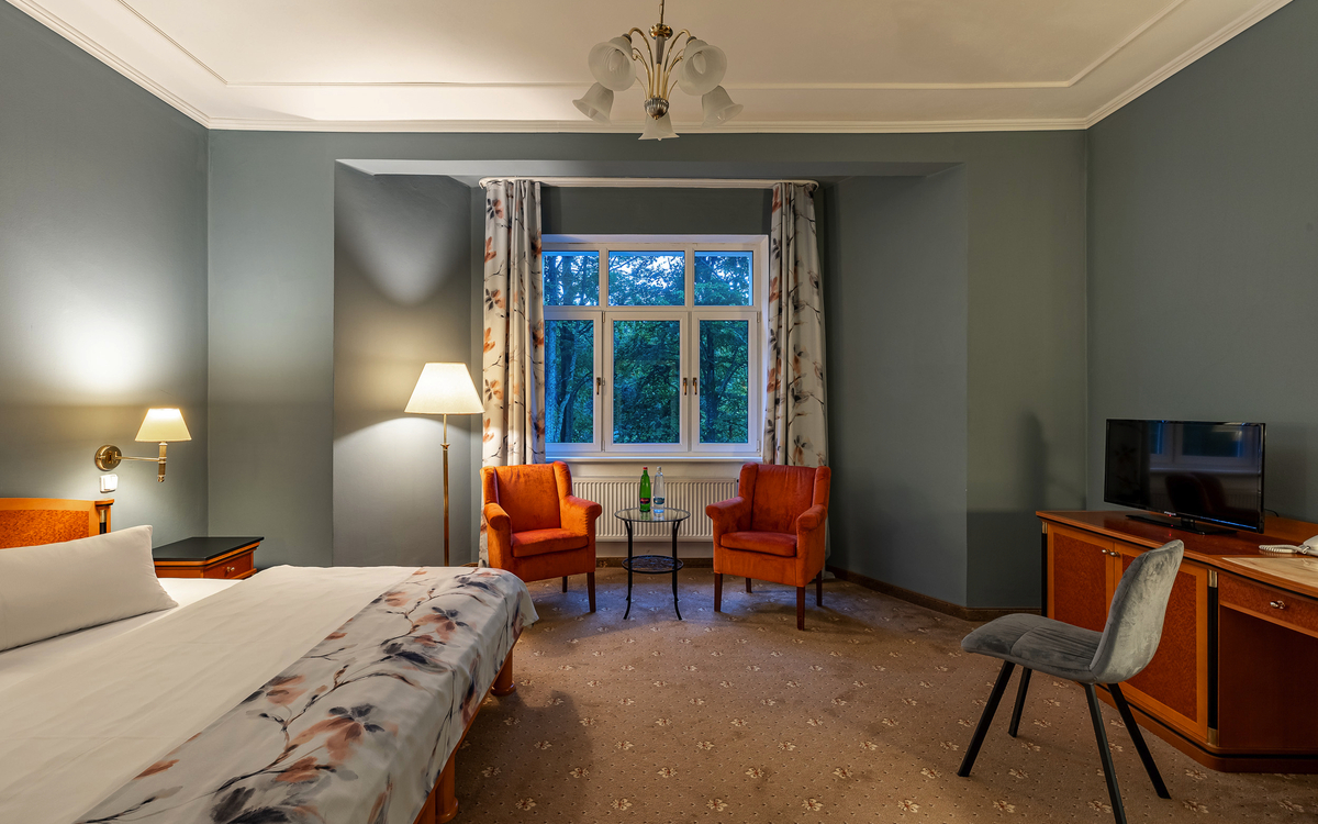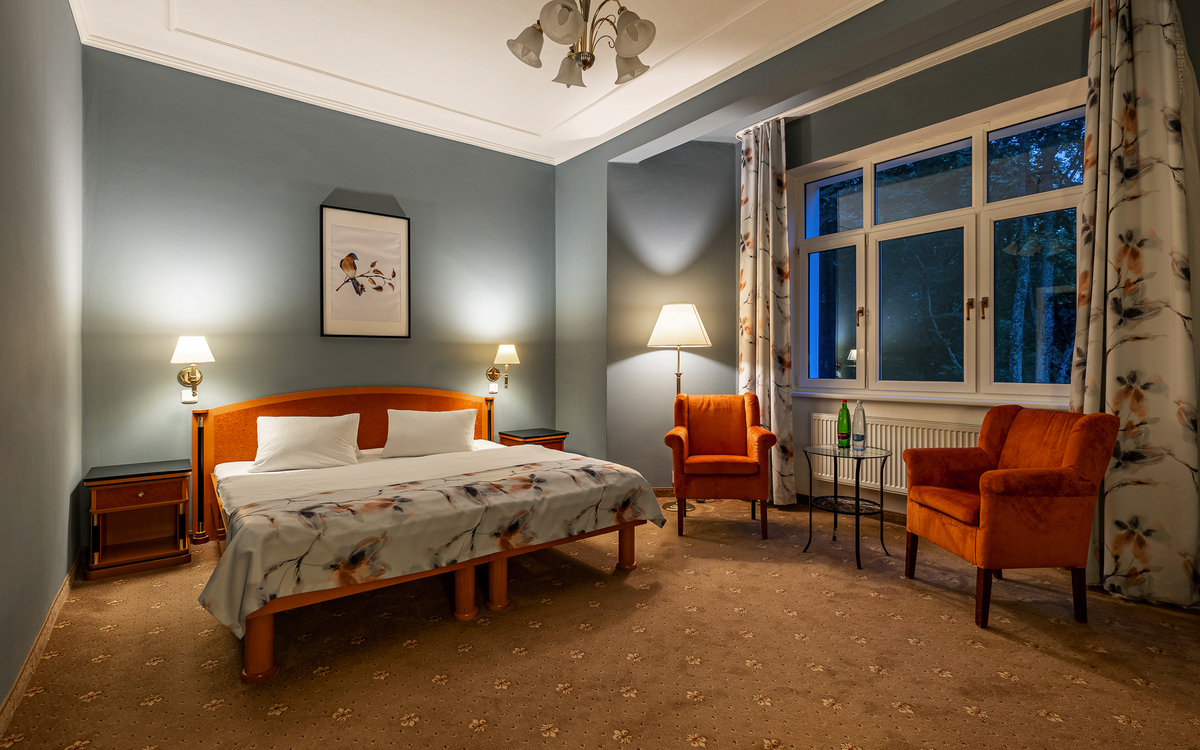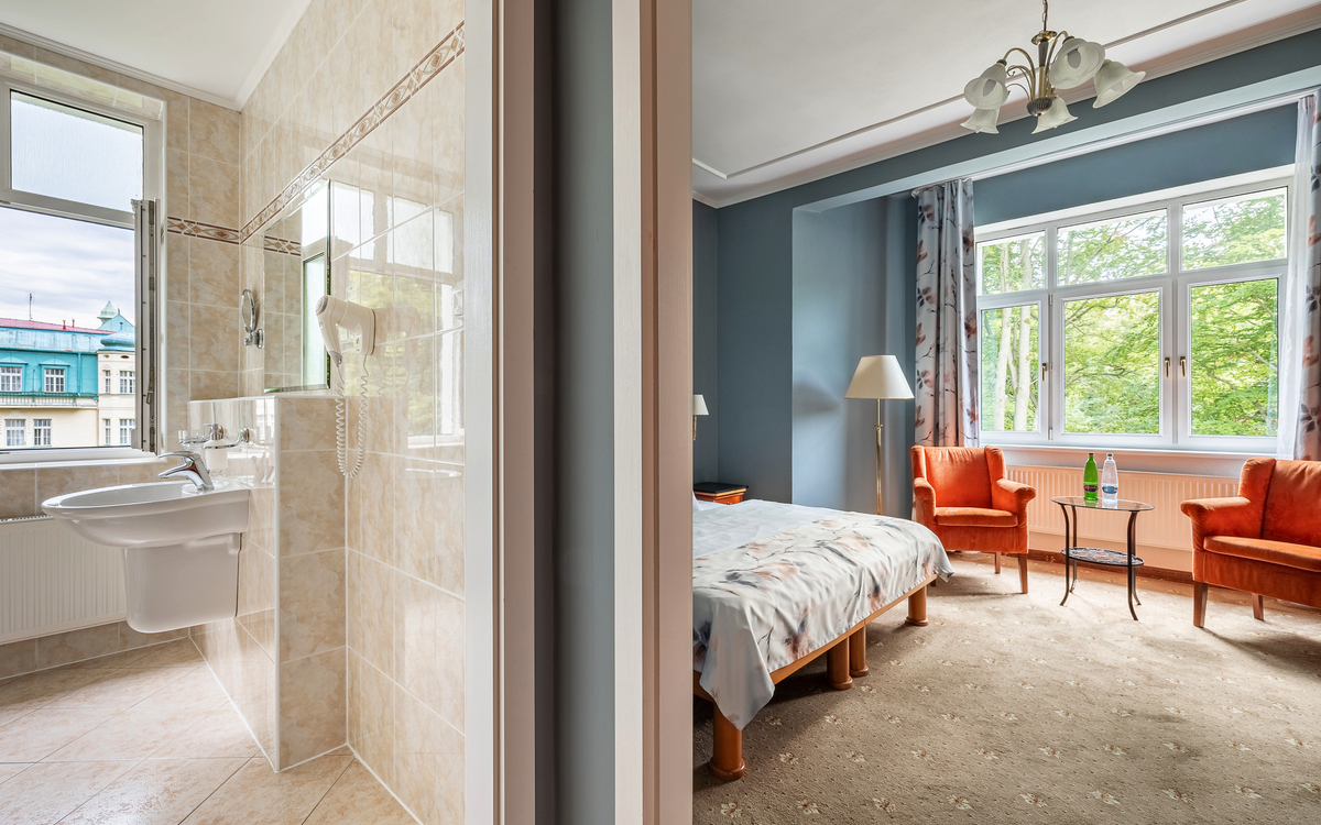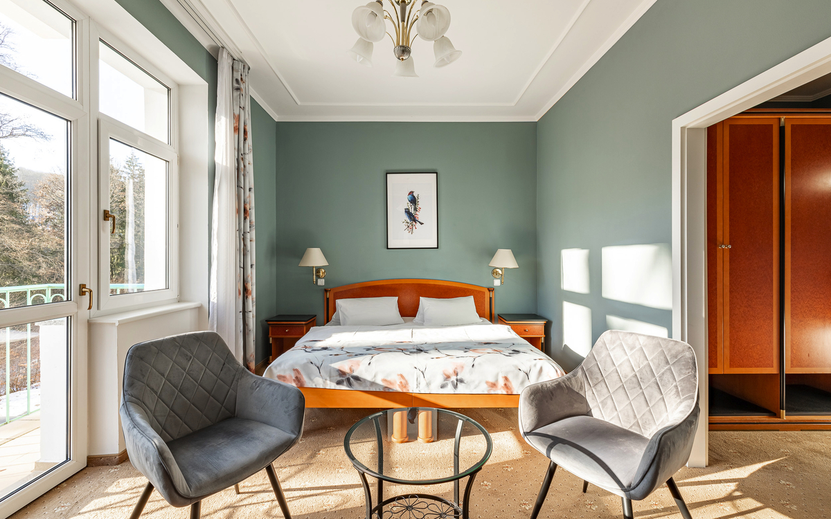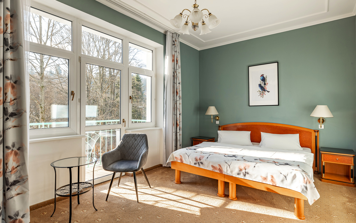 Im Kurhotel Silva in Marienbad erwarten Sie gemütlich eingerichtete Doppelzimmer, die für pure Entspannung und Erholung sorgen.
