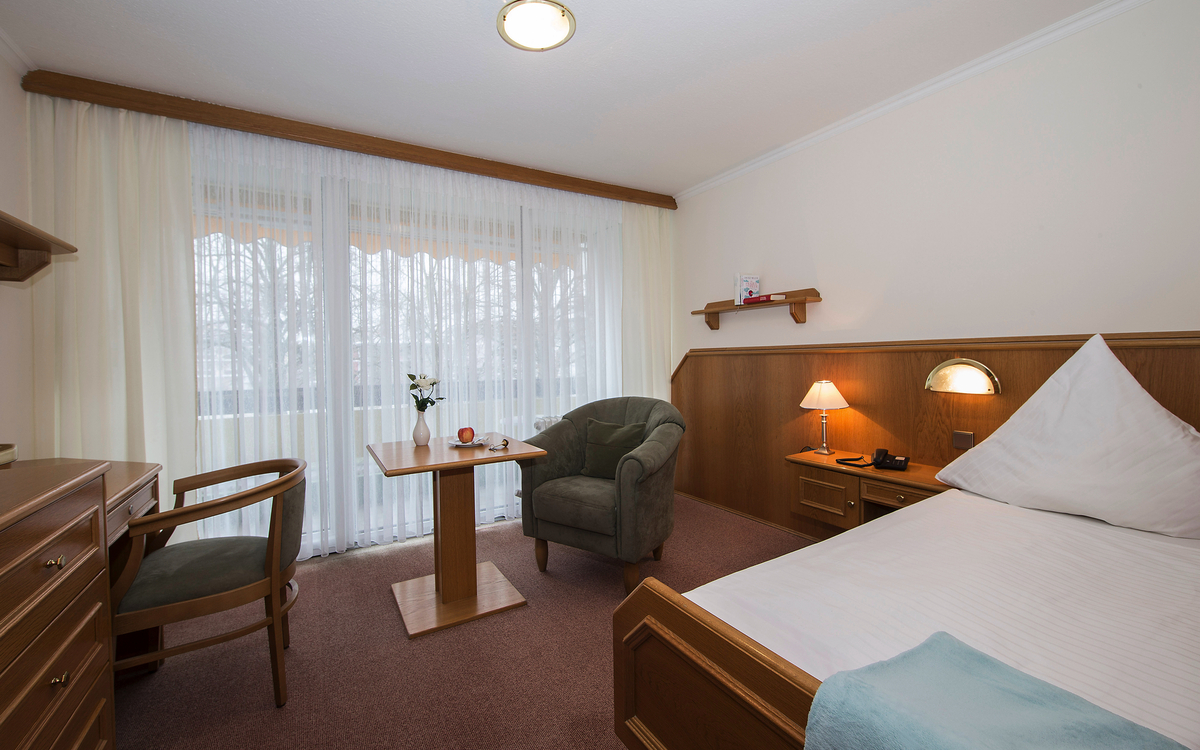 Die Einzelzimmer im Kurhotel Unter den Linden laden zum Verweilen ein und bieten Alleinreisenden alles Notwendige, um sich geborgen zu fühlen.