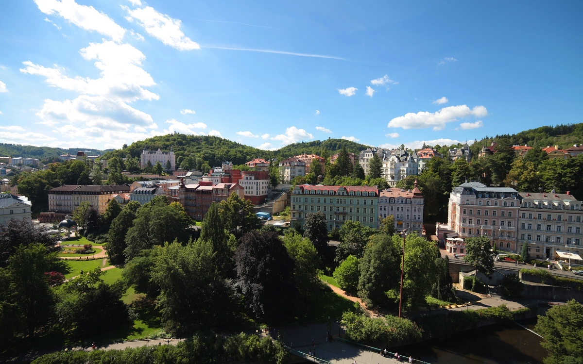 Die Zimmer der Kategorie Superior City View verfügen zusätzlich zur Superior-Ausstattung über einen Balkon mit atemberaubender Aussicht auf die Karlsbader Kurzone.