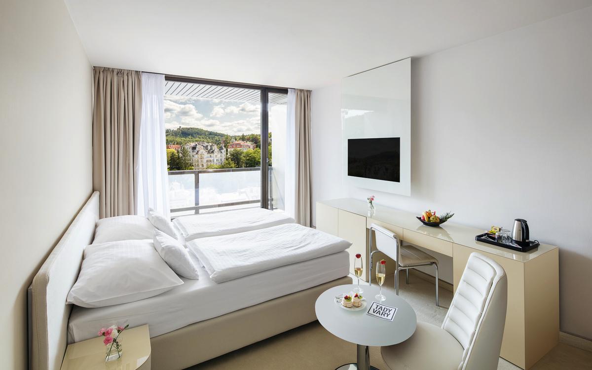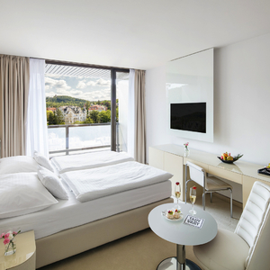 Die Zimmer der Kategorie Superior City View verfügen zusätzlich zur Superior-Ausstattung über einen Balkon mit atemberaubender Aussicht auf die Karlsbader Kurzone. Alleinreisende erhalten ein Doppelzimmer zur Alleinbenutzung.