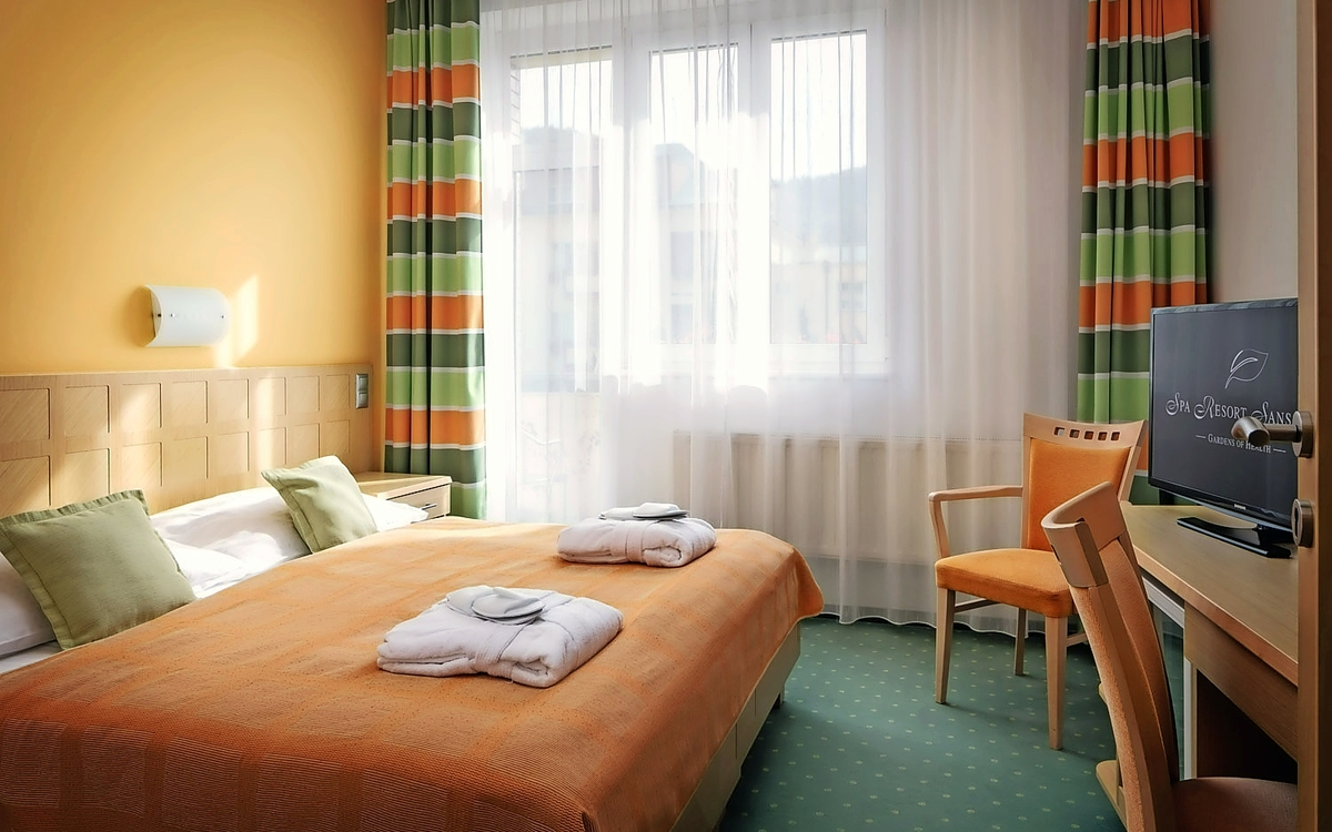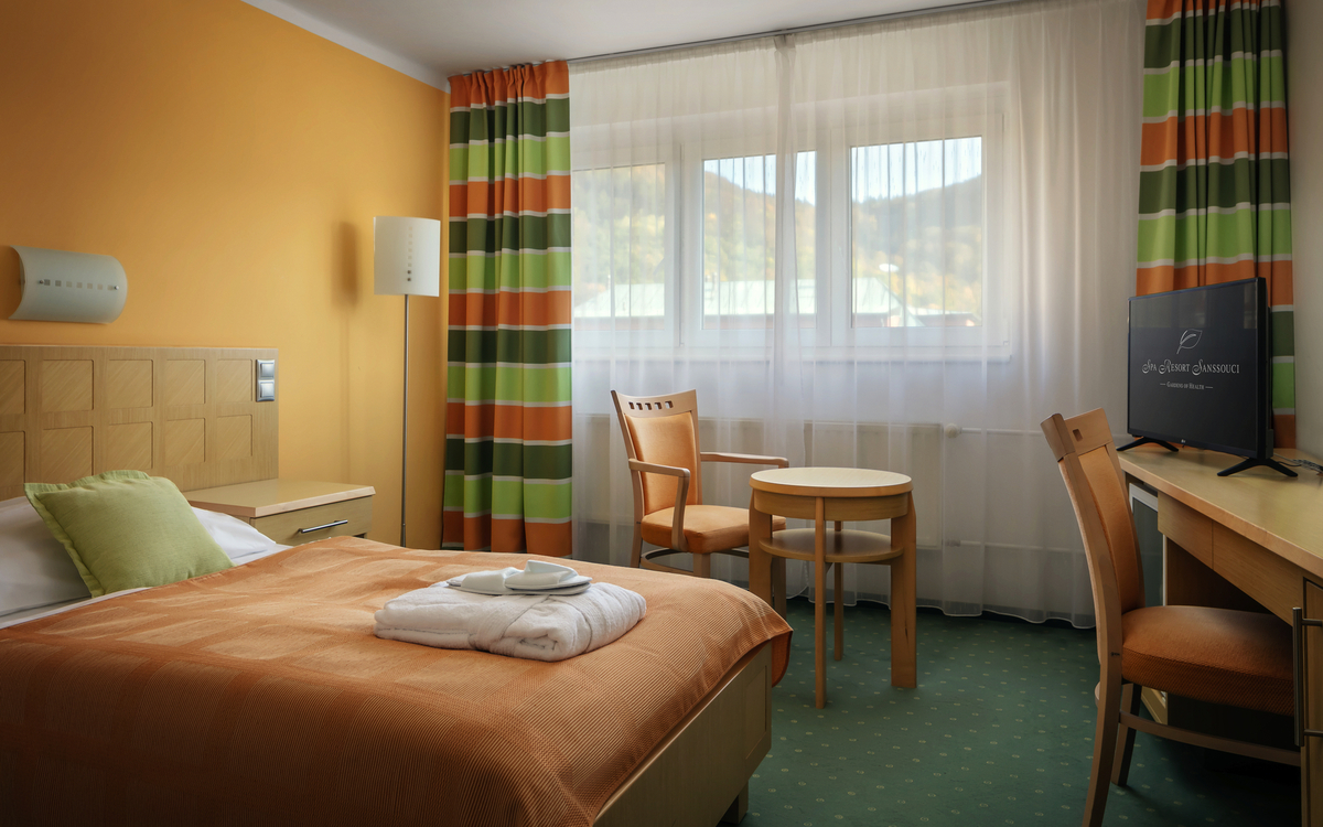 Die Einzelzimmer im Spa Resort Sanssouci sind modern ausgestattet und bieten Ihnen Viersternekomfort zum Wohlfühlen. Einige Zimmer verfügen über einen Balkon.
