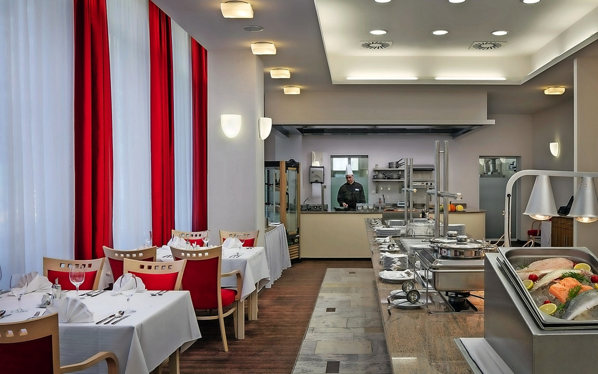 Alle Mahlzeiten genießen Sie als reichhaltiges Büfett. Auf Wunsch sind Diabetiker-, Reduktionskost sowie vegetarische Speisen möglich.